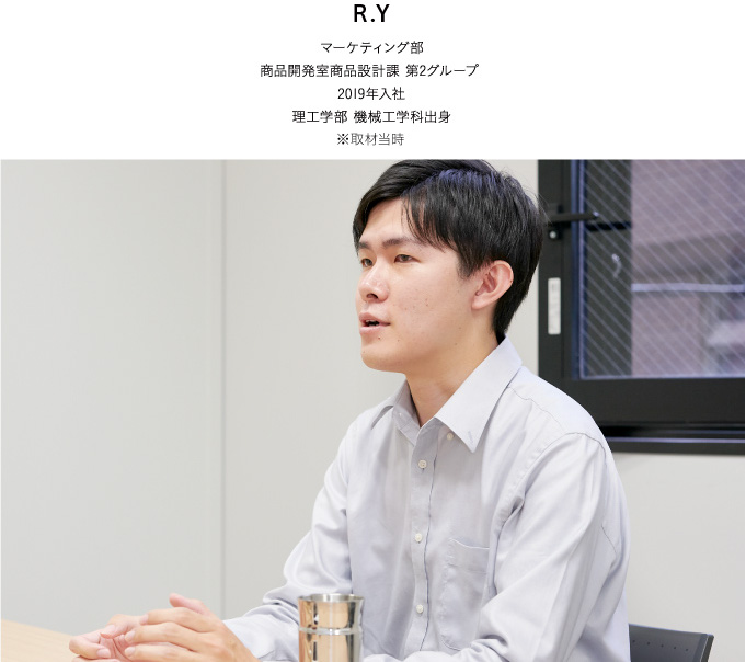 小さい頃からロボットや家電などに興味があり、大学では機械工学を学びました。勉強していく中で気がついたのは、電気系統やプログラミングといった領域よりも、実際にものとして形をつくることや設計図を書くのが好きだということ。そして、幅広い年代の方々が日常的に使用する製品の設計がしたいと思い、出会ったのがサーモスです。メーカーによっては担当する領域が限定的な場合もあるようですが、サーモスは一つの製品に広く携われるのも魅力で入社を決めました。
